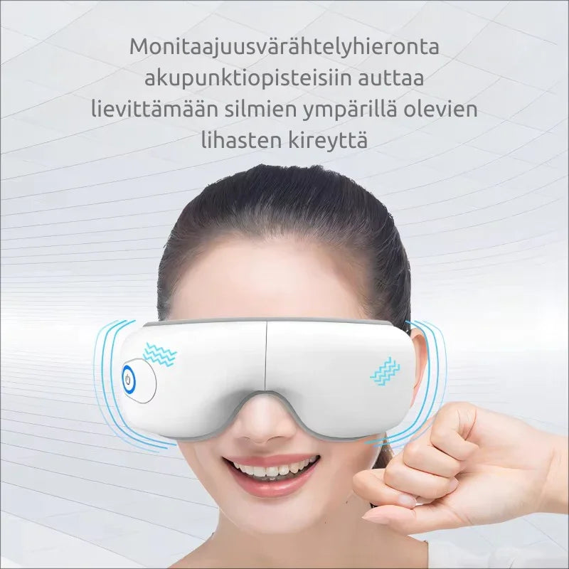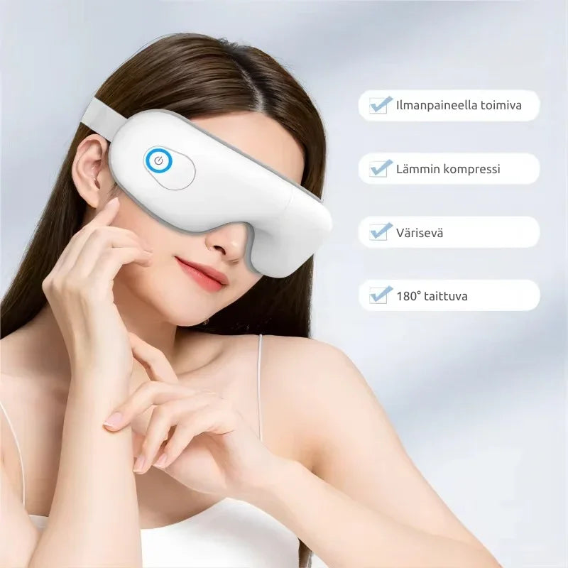 Suureen suosioon noussut silmähierontalaite yhdistää lämmön, värinän ja ilmanpainehieronnan helpottaakseen silmien väsymystä ja stressiä.
